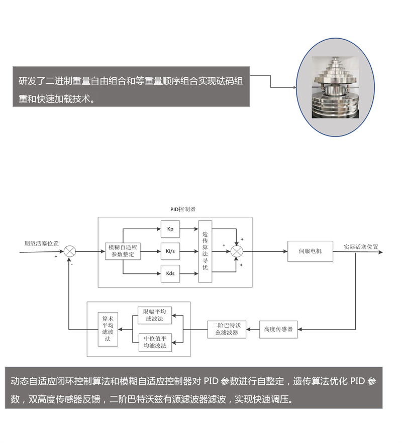 ①整數(shù)壓力點(diǎn)砝碼質(zhì)量全自動(dòng)加載功能