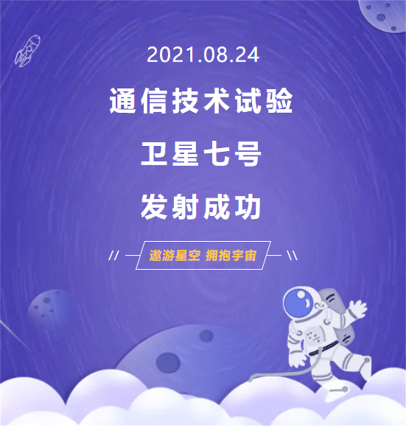2021年8月24日23時(shí)41分,我國在西昌衛(wèi)星發(fā)射中心用長征三號(hào)乙運(yùn)載火箭,成功將通信技術(shù)試驗(yàn)衛(wèi)星七號(hào)發(fā)射升空。衛(wèi)星順利進(jìn)入預(yù)定軌道,發(fā)射任務(wù)獲得圓滿成功。此次任務(wù)是長征系列運(yùn)載火箭的第386次飛行。