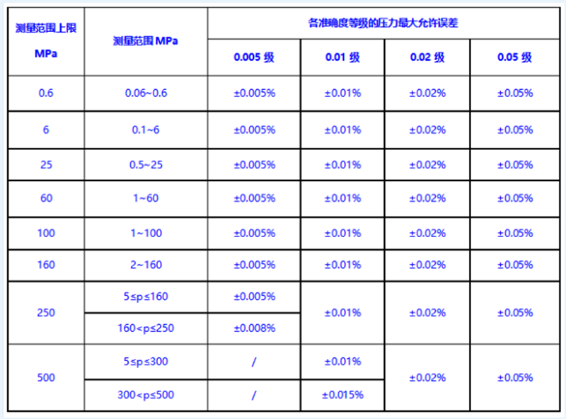 重新規(guī)定測量范圍和準確度等級,將高壓活塞壓力計的最大允許誤差分段。