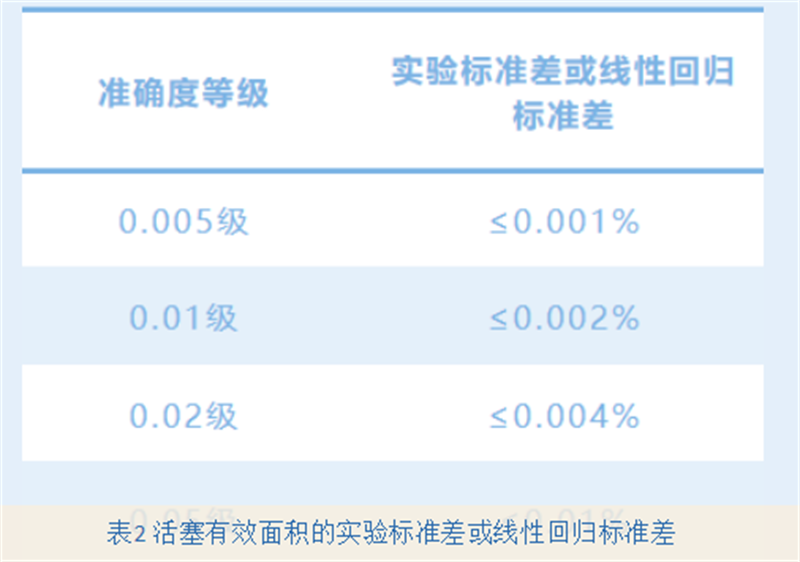 測量范圍上限為25MPa及以上的壓力計,活塞有效面積的線性回歸標準差應符合表2的規(guī)定。