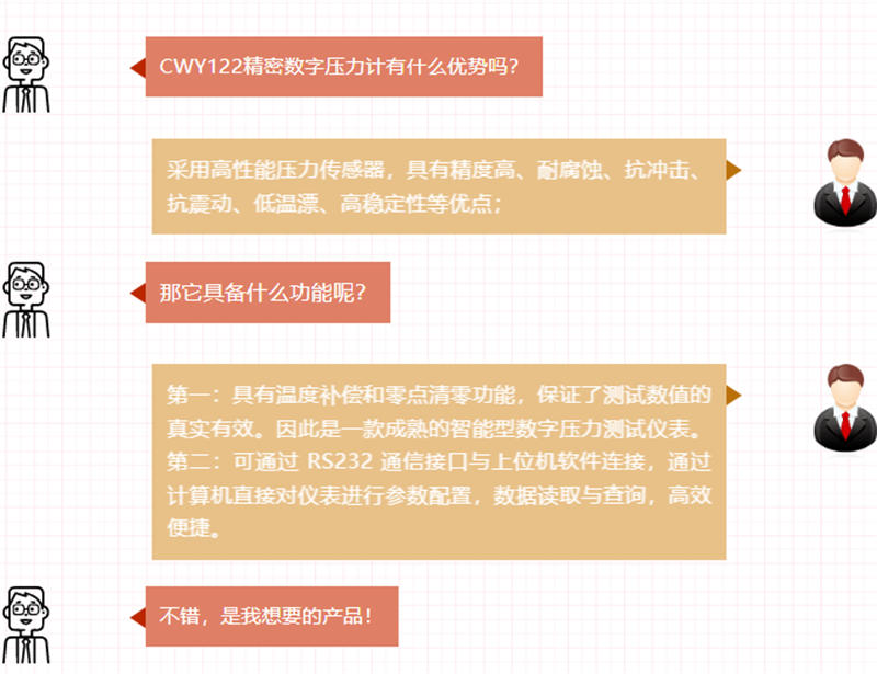 創(chuàng)威公司生產(chǎn)的新款CWY122精密數(shù)字壓力計(jì),是一款便攜式檢測儀表,它外形簡潔,顯示直觀,操作簡便,可以應(yīng)用于多種場合的壓力實(shí)時(shí)監(jiān)測。同時(shí)還具有環(huán)境溫度測量等功能。
