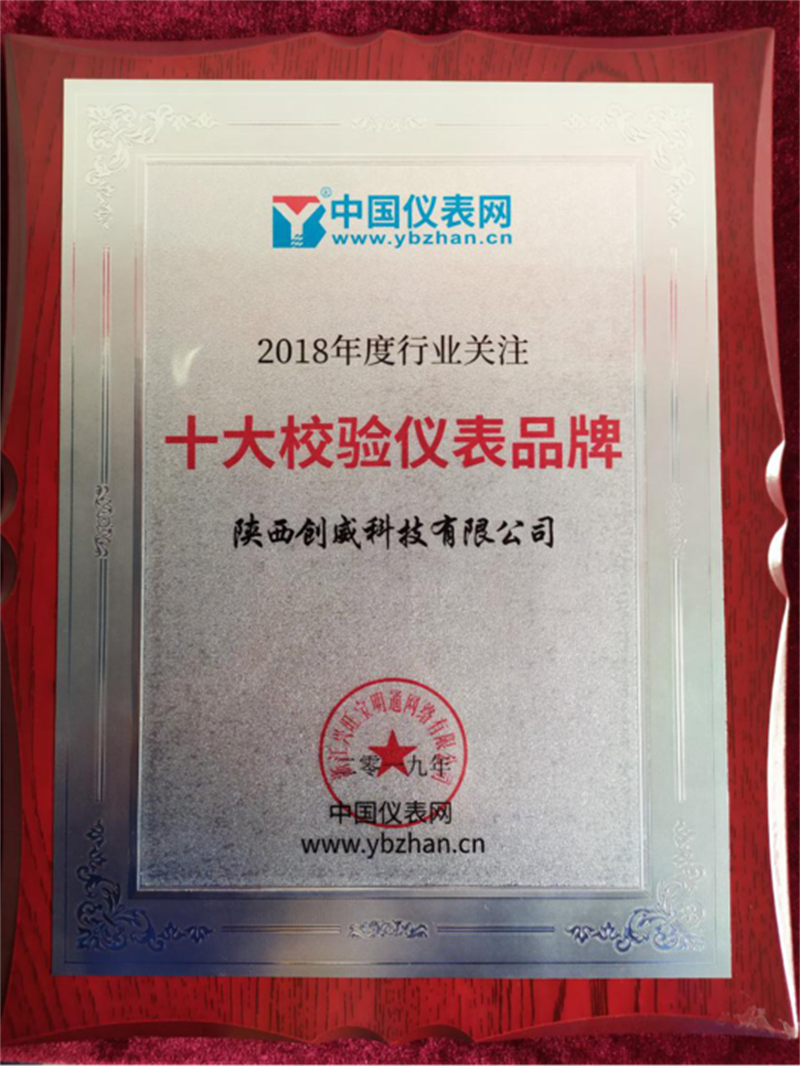 自去年5月份入圍“2018中國(行業(yè))最具影響力品牌”候選單位之后,中國儀表網(wǎng)組織的“十大校驗(yàn)品牌”盤點(diǎn)活動(dòng)中,幾十萬計(jì)量人參加投票。最終,陜西創(chuàng)威科技有限公司成功入選2018年度行業(yè)關(guān)注“十大校驗(yàn)儀表品牌”。