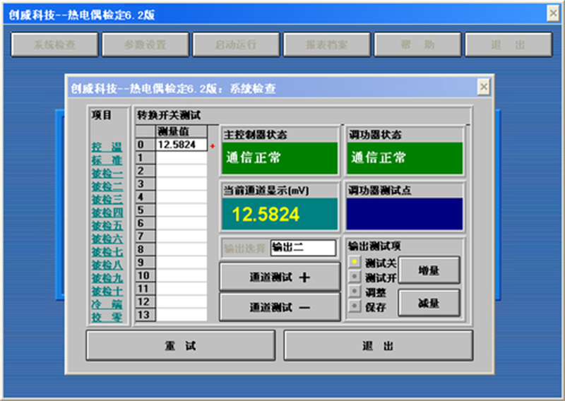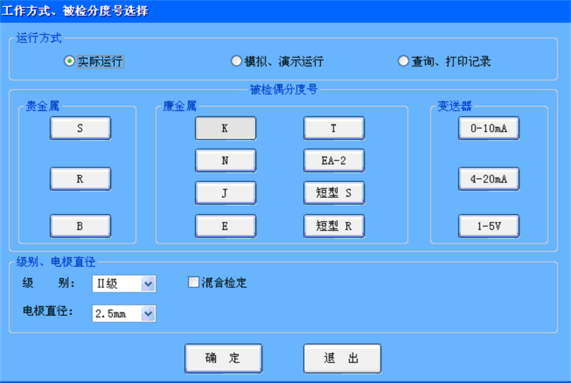 10.軟件系統(tǒng)計(jì)量管理一體化、多線程設(shè)計(jì),具有容錯(cuò)性和自診斷能力。系統(tǒng)運(yùn)行于windows2000、XP、windows7等平臺(tái)、全中文界面、鼠標(biāo)點(diǎn)擊操作,方便快捷。軟件實(shí)現(xiàn)溫度控制和監(jiān)控,顯示檢定數(shù)據(jù)及控溫曲線,數(shù)據(jù)自動(dòng)采集、保存,自動(dòng)打印檢定記錄和證書;另外,系統(tǒng)提供被檢表信息、檢定數(shù)據(jù)查詢、熱電偶熱電阻分度查詢,溫場測試,總不確定度計(jì)算等功能。
