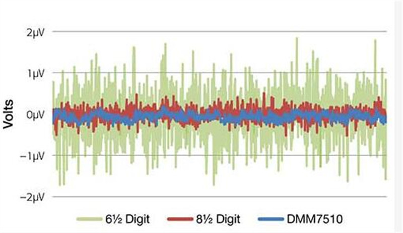 高靈敏度可讓 DMM7510 測量低電壓、電流和電阻,并檢測微小變化和信號漂移。