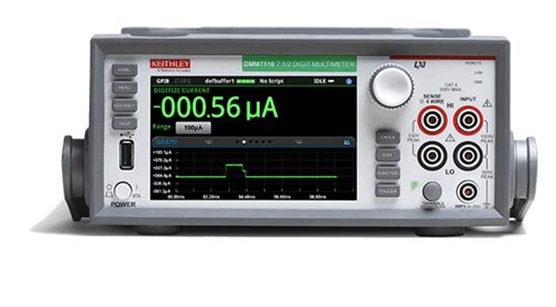 DMM7510 集高精度、高分辨率數(shù)字萬用表 (DMM)、圖形觸摸屏顯示器和高速、高分辨率數(shù)字化器于一身,是一款圖形采樣萬用表。 其具有 pA 靈敏度和 1M 個(gè)樣點(diǎn)/秒的采樣率,能準(zhǔn)確測量超低睡眠模式電流和傳輸無線設(shè)備的漏電流。