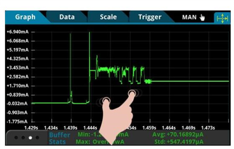 使用圖形觸摸屏顯示器可視化和研究每一個(gè)波形。對于更深入的分析,通過縮放輕松擴(kuò)展和放大視圖。